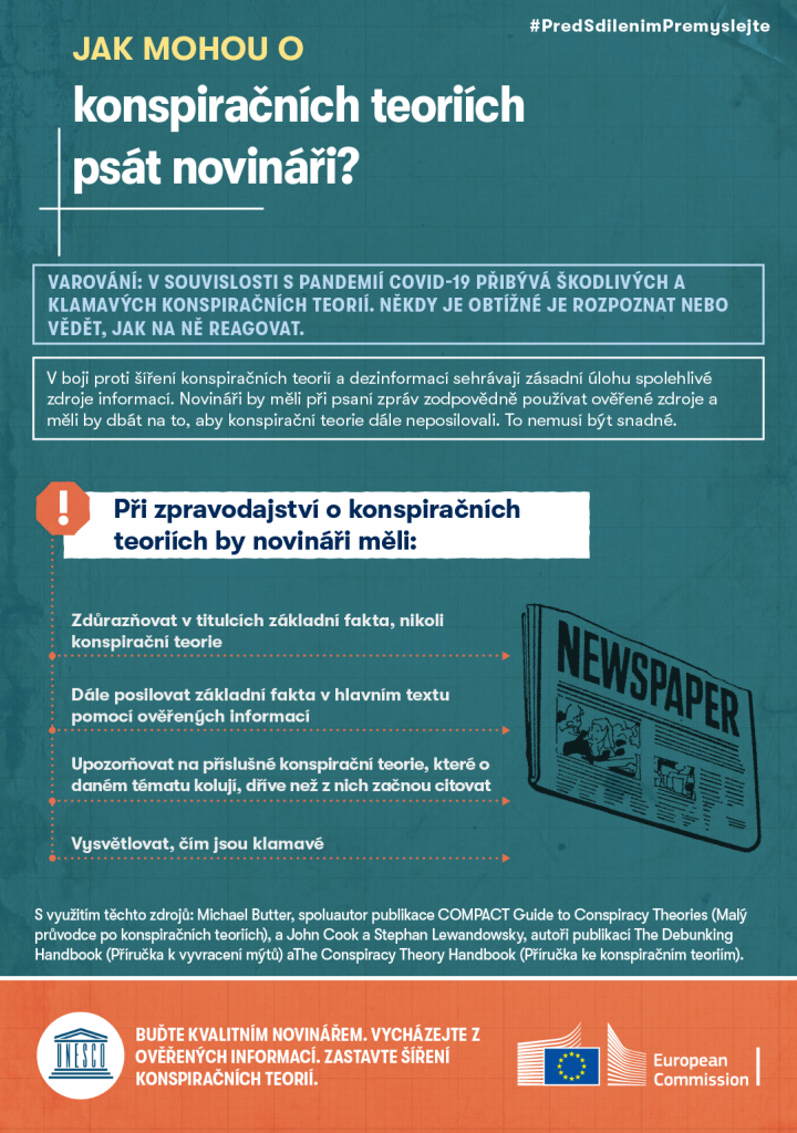 Doporučujeme letáky UNESCO ke sdílení a šíření, aby vešlo do povědomosti, že ne vše, co se píše nebo říká je pravda. Návod, jak tu pravdu najít a sdělit najdete v galerii níže.